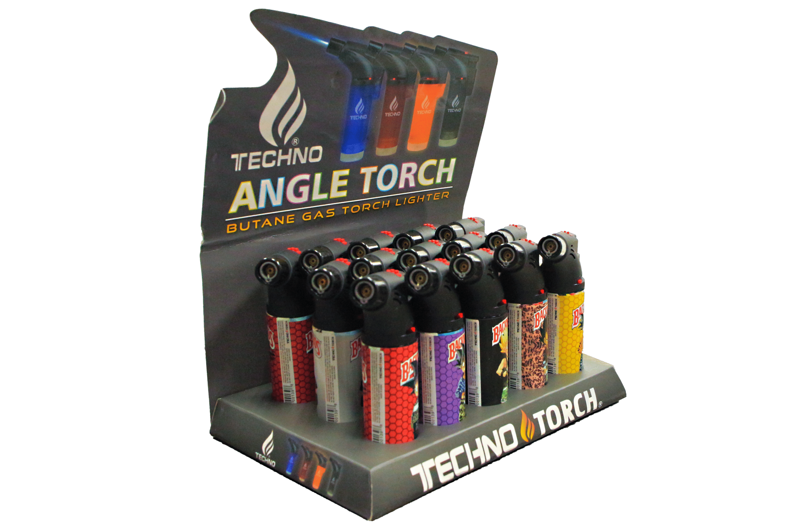 The Techno Angle Torch Lighter delivers reliable power in a compact, ergonomic design. Featuring bold and colorful wrap designs, this refillable butane torch is ideal for everyday use and display. The angled nozzle provides precision and control, while the easy-ignition system ensures fast lighting every time. With vibrant prints and sturdy construction, this lighter blends functionality with eye-catching appeal. Sold in a convenient 6-piece display.