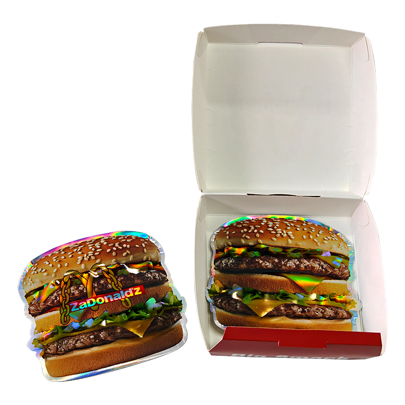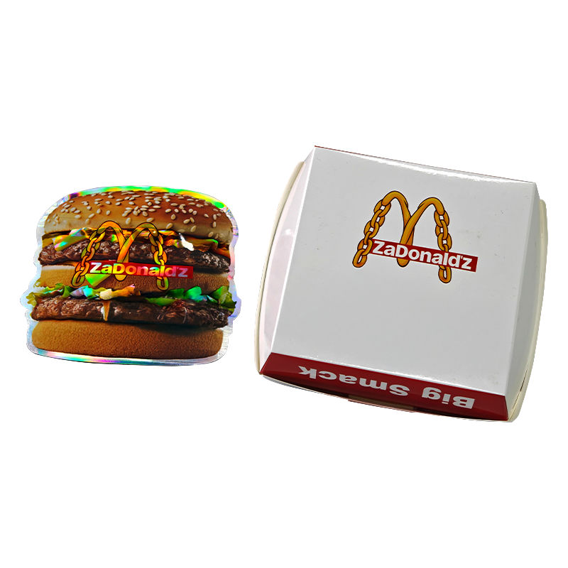 Each piece measures approximately 13″ x 8″ x 0.5″ when laid flat and assembles into a 5.5″ x 5.5″ gift box. The hamburger-themed bag fits neatly inside the box, creating a complete and display-ready presentation.