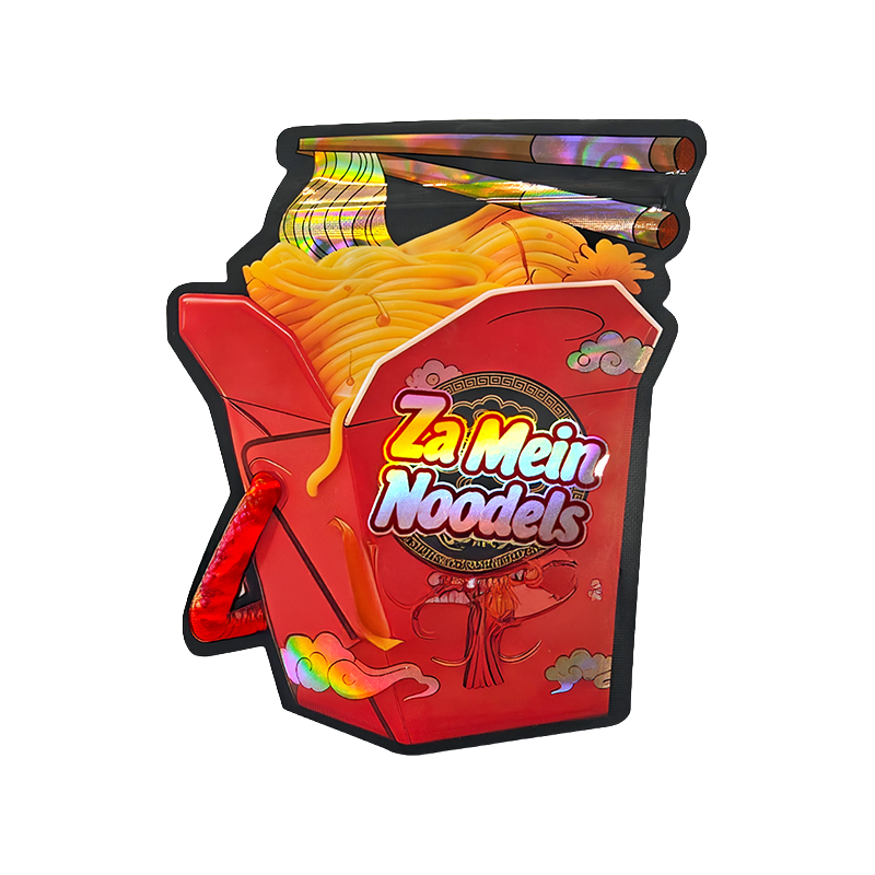 Each pouch is crafted from durable foil material with a glossy finish, paired with a sturdy pizza-style box for a fun and eye-catching presentation. Ideal for themed packaging projects, collectible-style displays, and creative retail presentation concepts.