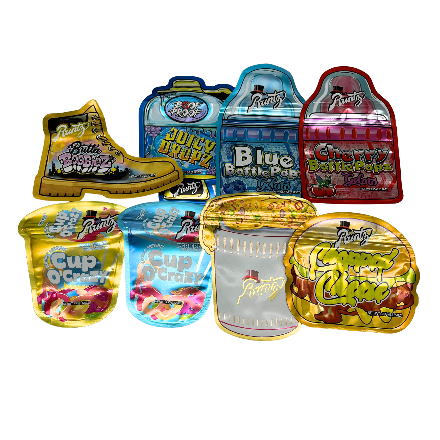 (50 Pack) 3.5 Mylar Bag Mix Collection (SHAPED RUNTZ)