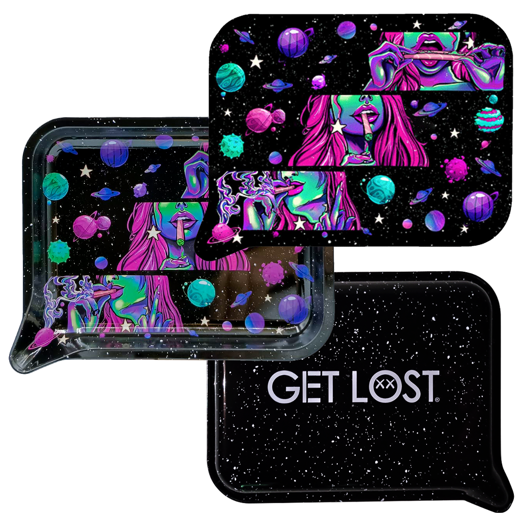 FRT3D-SM-030 Get Lost Small 3D Rolling Tray With Magnetic Lid Cover (Rolling Smoking Girl)