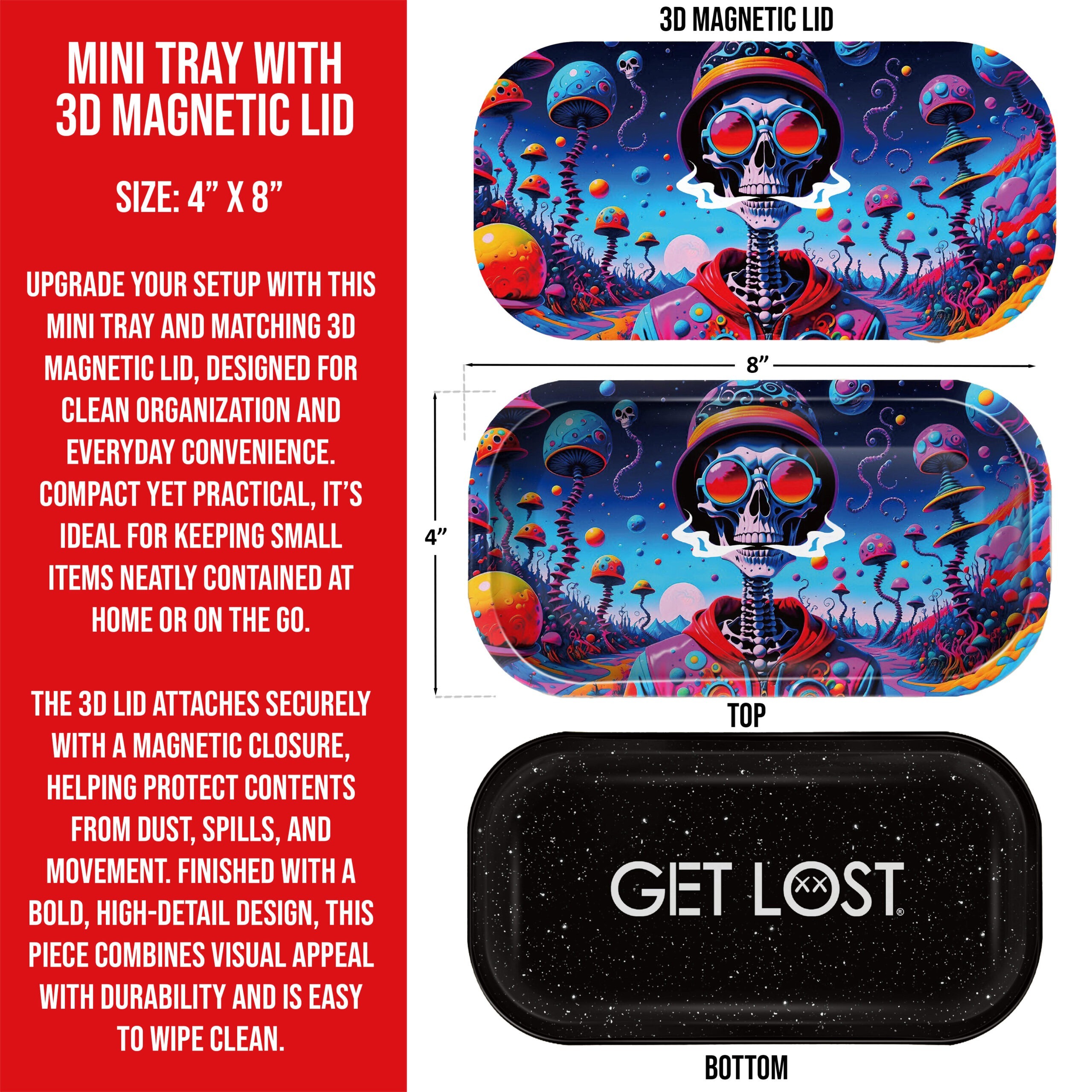 GLMT-020 Mini Magnetic 3D Tray with Lid - Get Lost Cool Style Skeleton